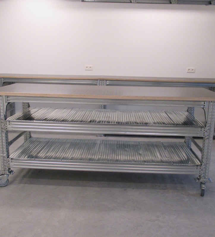 • Zeer veel afmetingen.Kan modulair gemaakt worden : bv. zeer lange werkbanken uit één stuk. Optie: vaste wielen, zwenkwielen